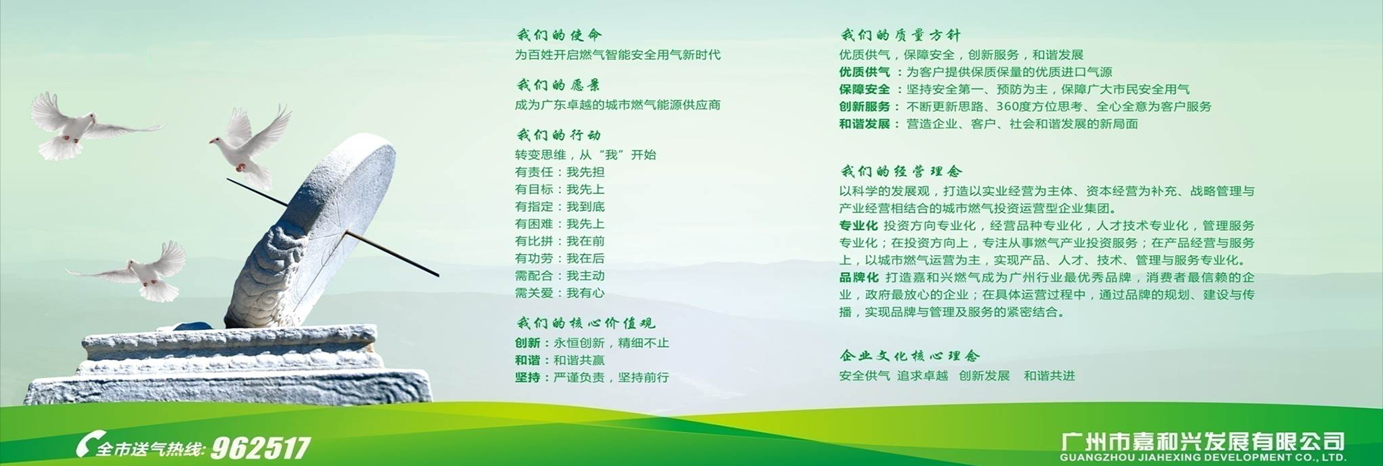 公司在廣州經(jīng)營(yíng)多年的液化氣的過程中,積累了大量的行業(yè)資源,積極配合政府管理及倡導(dǎo)行業(yè)溝通協(xié)調(diào)。現(xiàn)在“嘉和興”已成為廣州液化氣市場(chǎng)的著名品牌。
